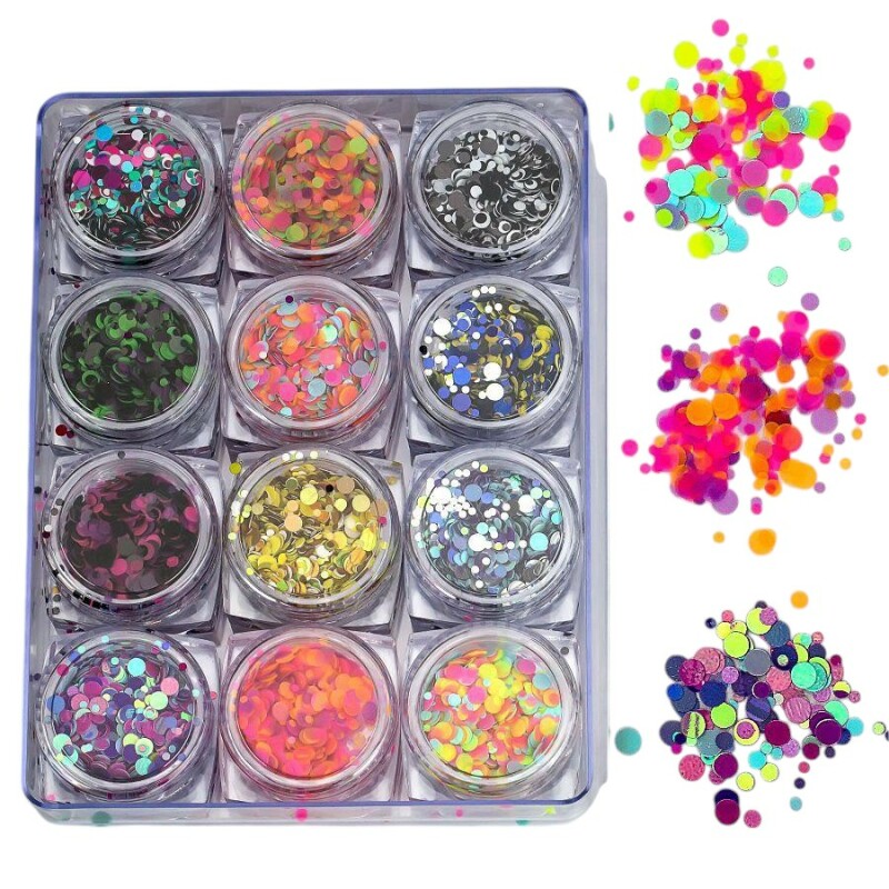 Froomo, маркетплейс професійної косметики та товарів для здоров'я\\Набір декору для манікюру GC-11 мерехтливі кружечки різних розмірів 12 кольорів