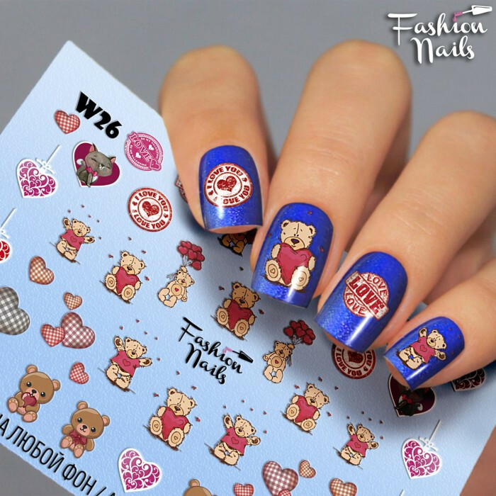 Froomo, маркетплейс професійної косметики та товарів для здоров'я\\Слайдер-дизайн Ведмедики Тедді Fashion Nails Водні Наклейки для Дизайну Нігтів Ведмедики Тедді Teddy