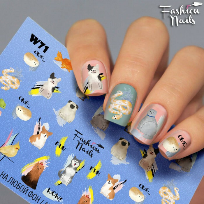 Froomo, маркетплейс професійної косметики та товарів для здоров'я\\Наклейки - Слайдери на Нігті - Тварини. Наклейки на нігті з тваринами Змія Собака Кішка Fashion Nails W71