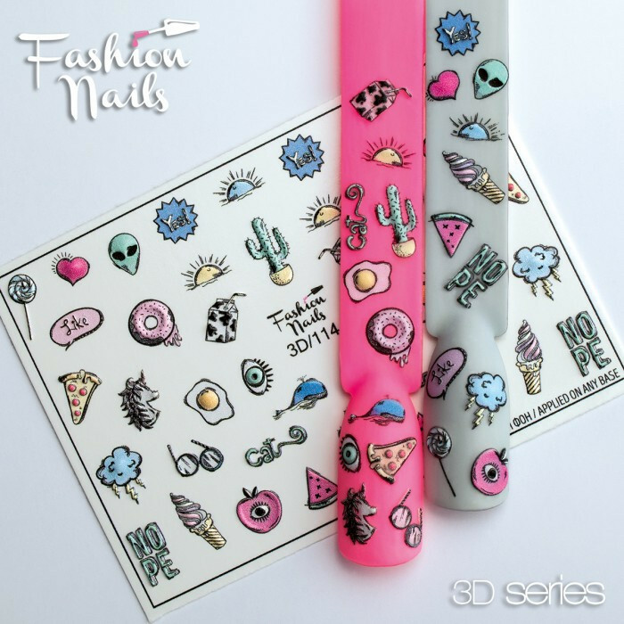 Froomo, маркетплейс професійної косметики та товарів для здоров'я\\Слайдер дизайн 3D Кактус Пончик Пастух Піца Глазунья Окуляри Морозиво - Наклейки для нігтів Fashion Nails