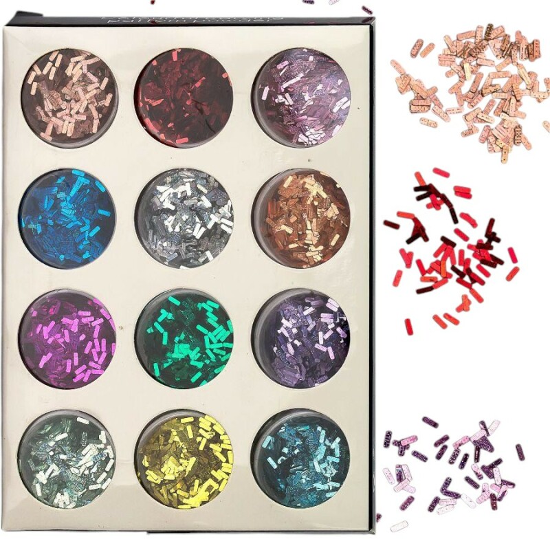 Froomo, маркетплейс професійної косметики та товарів для здоров'я\\Набір декору для манікюру GC-55 Мерехтливі палички 12 кольорів