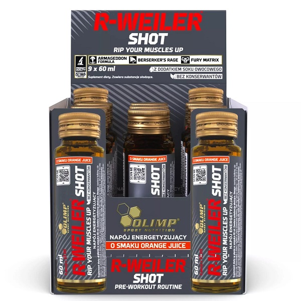Froomo, маркетплейс професійної косметики та товарів для здоров'я\\Комплекс до тренування Olimp Nutrition R-Weiler Shot БЛОК СКЛО 9 х 60 ml Orange