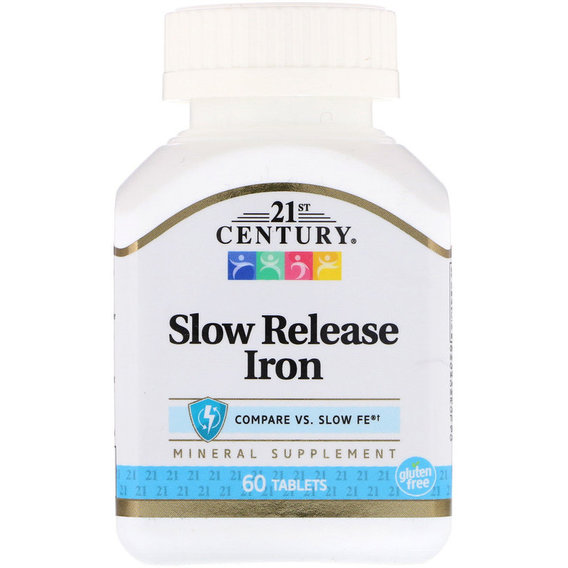 Froomo, маркетплейс професійної косметики та товарів для здоров'я\\Мікроелемент Залізо 21st Century Slow Release Iron 45 mg 60 Tabs