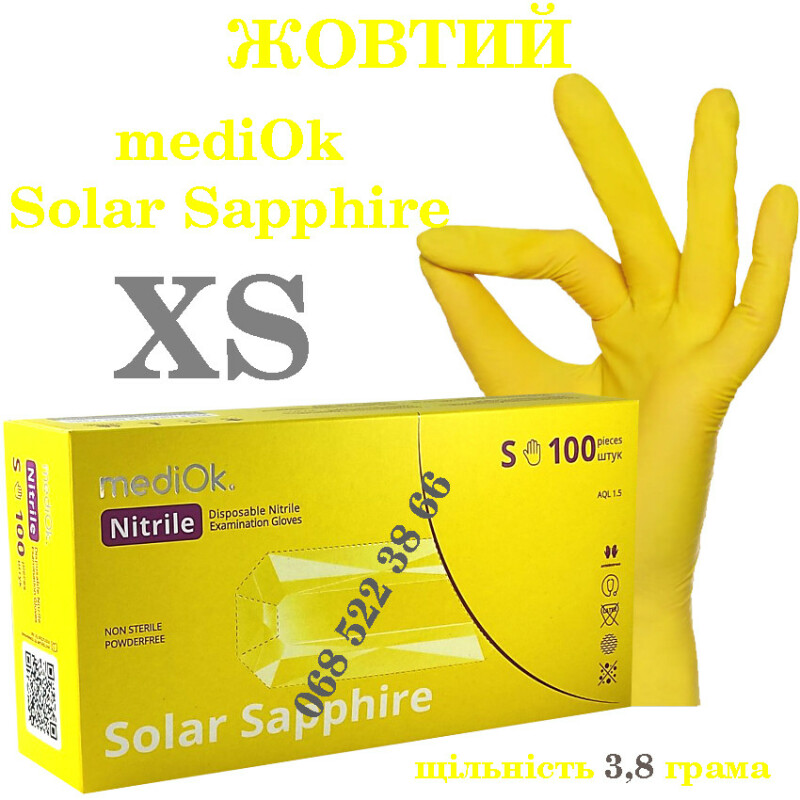 Рукавиці нітрилові жовтий Mediok Solar Sapphire розмір XS, щільність 3.8г, уп.100 шт
