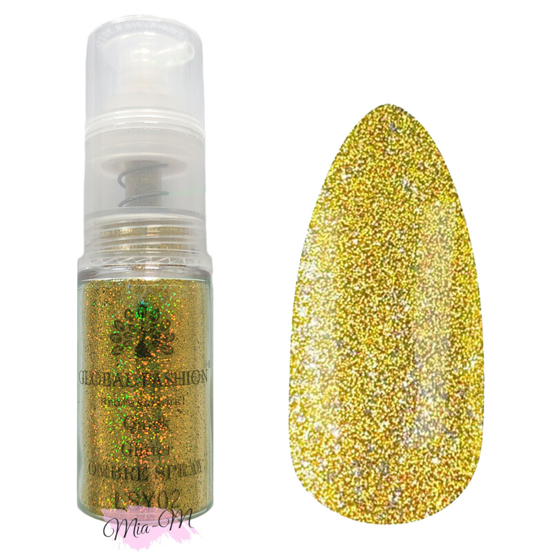 Froomo, маркетплейс професійної косметики та товарів для здоров'я\\Сухая спрей-пудра для омбре Global Fashion Quick Glitter Ombre Spray №LSY02 золотистая светоотражающая, 7.5 г
