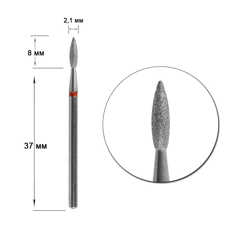 Froomo, маркетплейс професійної косметики та товарів для здоров'я\\Фреза для манікюру для фрезера IQnails алмазна "Полум'я загострене" IQ243XL.514.021 [червона; d 2,1 мм]