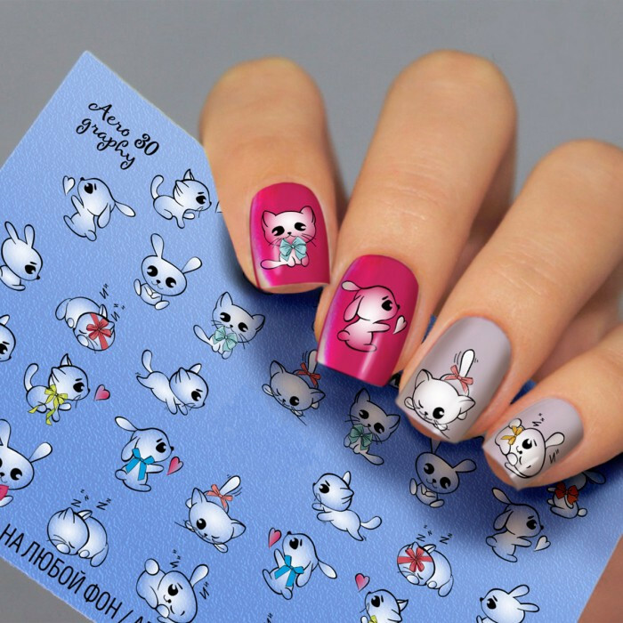 Froomo, маркетплейс професійної косметики та товарів для здоров'я\\Водні наклейки для нігтів Мультики Зайчик Кошеня Fashion Nails ( Слайдер -дизайн Котики, Зайчики ) Aero30