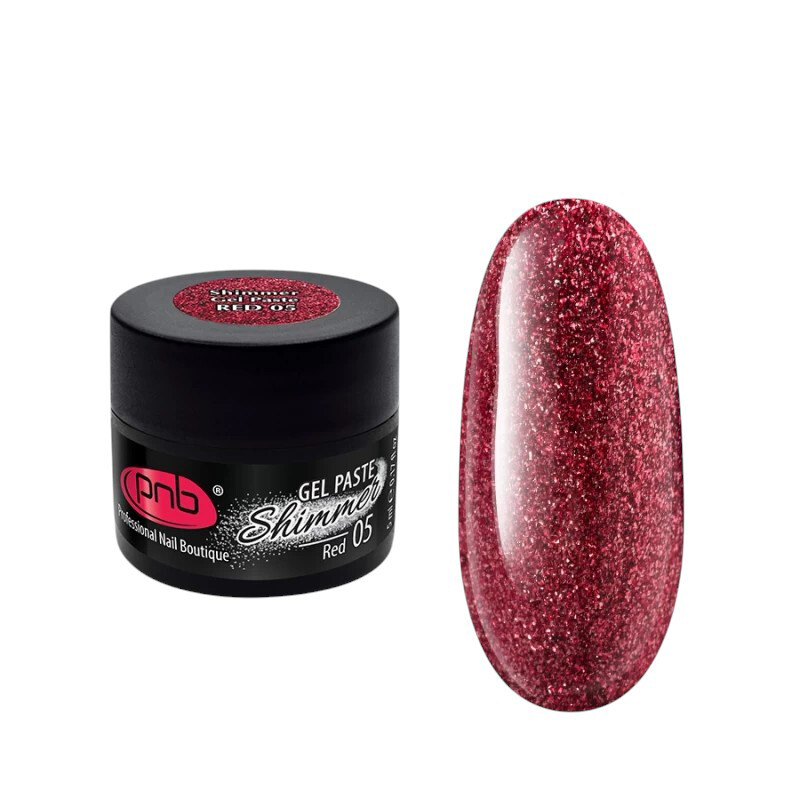 Froomo, маркетплейс професійної косметики та товарів для здоров'я\\Гель-паста для нігтів із шимером PNB Shimmer Gel Paste 05 Red, 5 ml