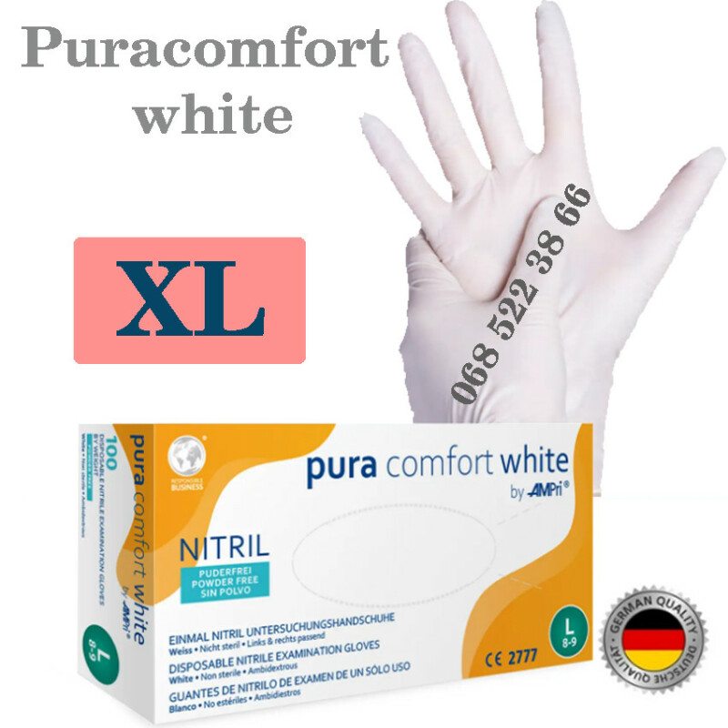 Рукавиці нітрилові білі Pura comfort white розмір XL, щільність 3.8г, уп100 шт.