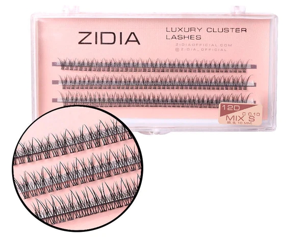 Вії пучкові ZIDIA Cluster Lashes 12D MIX S C 0,10*9 10 11 мм, 3 стрічки
