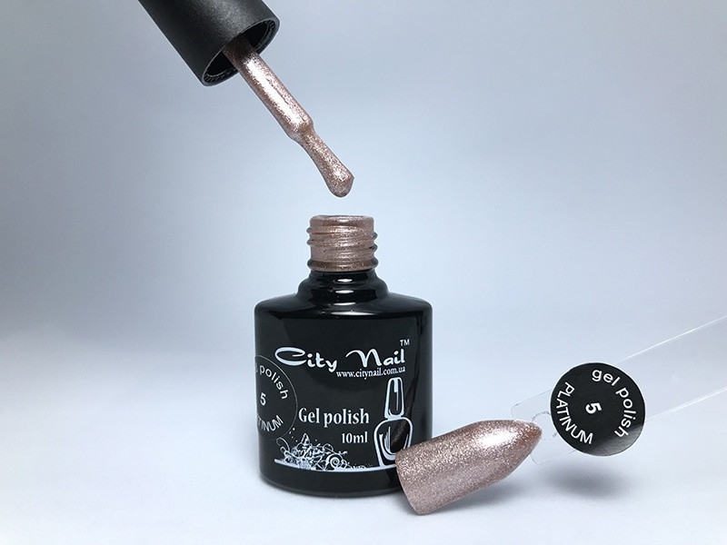 Froomo, маркетплейс професійної косметики та товарів для здоров'я\\Гель лак City Nail серія PLATINUM №5 сріблясто-рожевий 10мл арт.ГлPl5-10