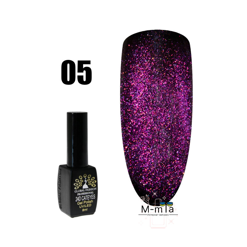 Froomo, маркетплейс професійної косметики та товарів для здоров'я\\Гель лак кошачий глаз 24D Global Fashion magic cat № 5