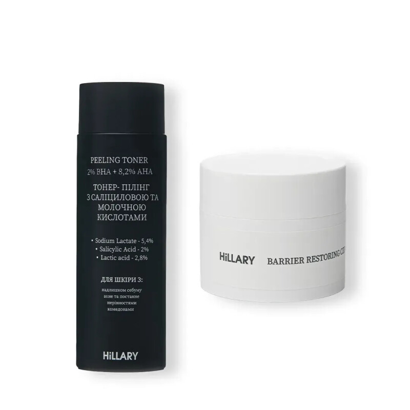Набір Тонер-пілінг 2% ВHA + 8,2% AНА + Відновлювальний крем з керамідами та постбіотиками