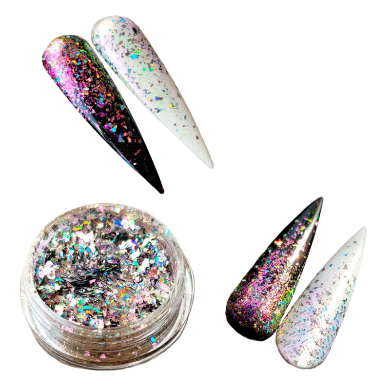 Froomo, маркетплейс професійної косметики та товарів для здоров'я\\Пластівці юки для нігтів сріблясто-рожеві голограмні