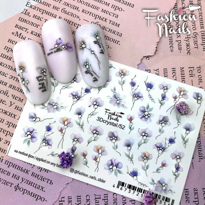 Froomo, маркетплейс професійної косметики та товарів для здоров'я\\Слайдер-дизайн Fashion nails 3D Crystal Слайдери водні наклейки ЦВІТИ зі стразами 3Dcrystal/52