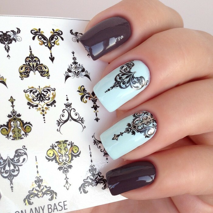 Слайдери водні наклейки ВЕНЗЕЛІ - Наклейки для нігтів чорні мережива, вензелі, візерунки