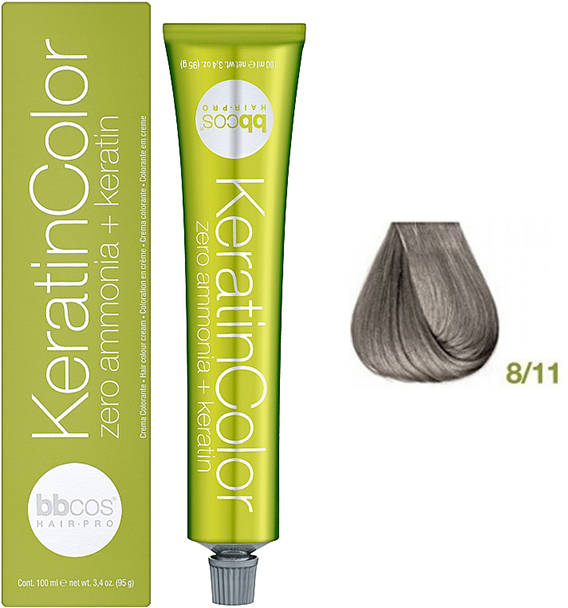 Froomo, маркетплейс професійної косметики та товарів для здоров'я\\Фарба для волосся блондин світлий інтенсивний попелястий Keratin Color 8/11