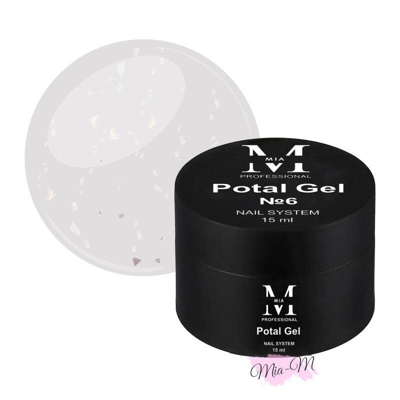 Цветной гель для наращивания ногтей Mia-M Professional Potal Gel №6 молочный с серебристой поталью, 15 мл