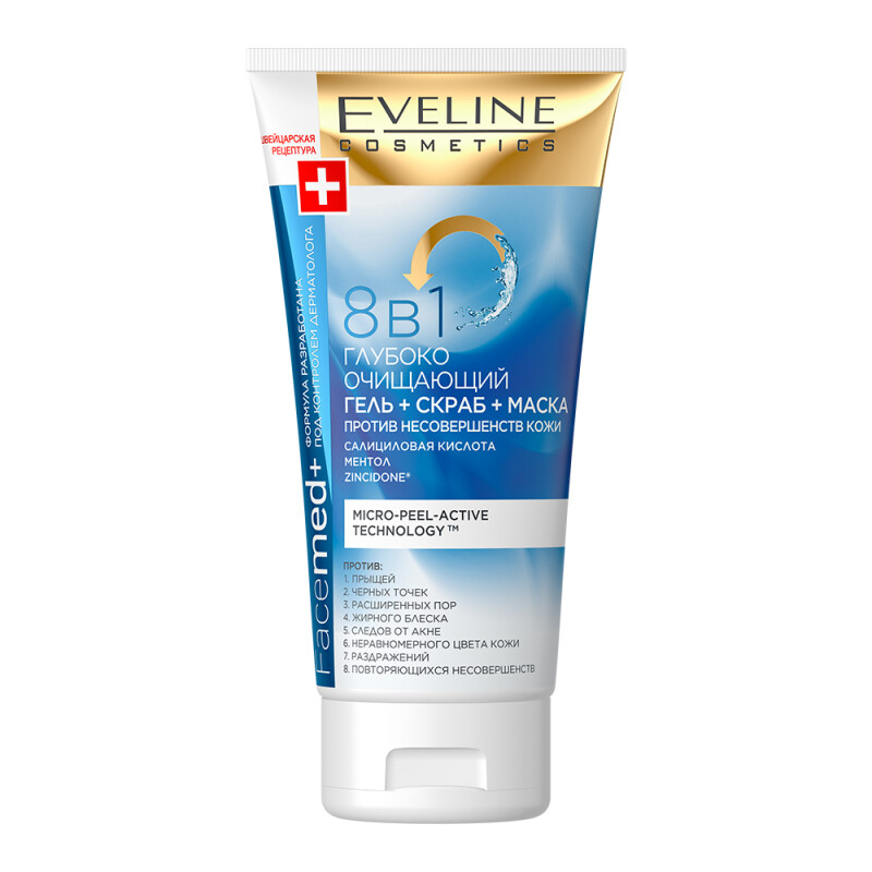 Froomo, маркетплейс професійної косметики та товарів для здоров'я\\Глибоко очищуючий гель+скраб+маска проти недосконалостей шкіри 8 в 1 Eveline 150 мл