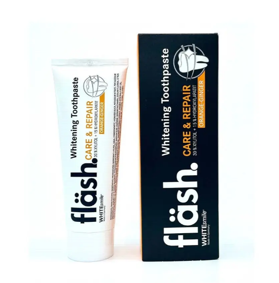 Froomo, маркетплейс професійної косметики та товарів для здоров'я\\Зубна паста fläsh із фтором, ксилітолом і гідроксилопатитом, 75 мл, паста відбілювальна, апельсин-імбир