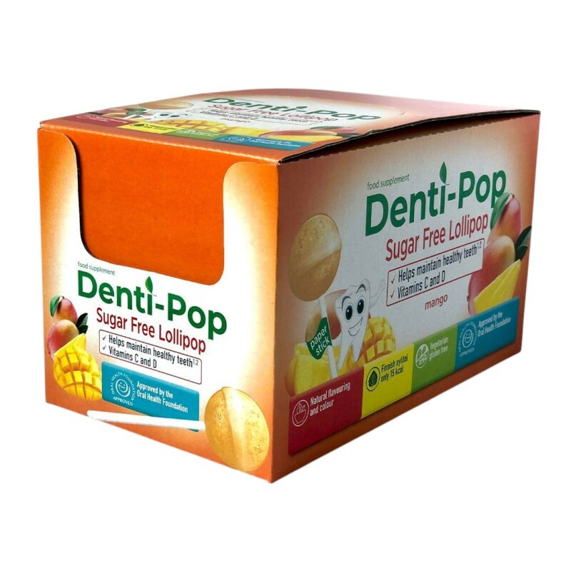 Froomo, маркетплейс професійної косметики та товарів для здоров'я\\Льодяники Denti Pop зі смаком манго з вітамінами і ксилітом без цукру 40 шт