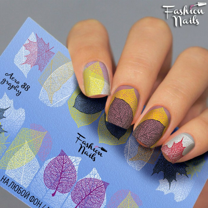 Froomo, маркетплейс професійної косметики та товарів для здоров'я\\Слайдер-дизайн Fashion nails - наклейка для нігтів - осінній листочок
