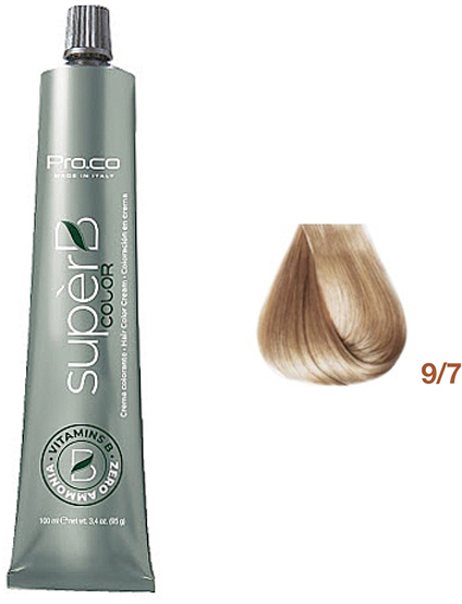 Froomo, маркетплейс професійної косметики та товарів для здоров'я\\Безаміачна фарба для волосся Super B Hair Color Cream 9/7