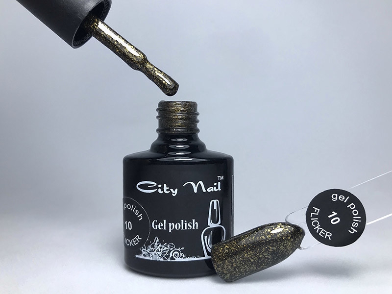 Гель лак з глітером FLICKER № 10 коричневий із золотим шиммером 6