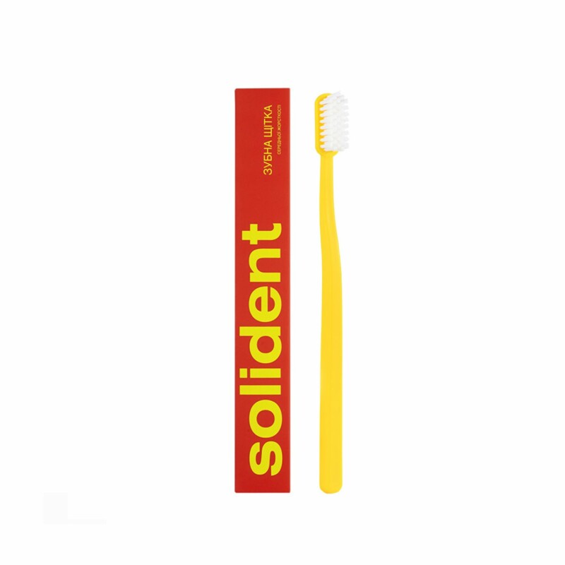 Зубна щітка середньої жорсткості SOLIDENT Мedium Hardness в кольорі: жовта