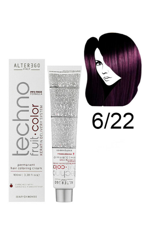 Froomo, маркетплейс професійної косметики та товарів для здоров'я\\Alter Ego Techno Fruit Color Permanent Крем фарба Технофрут Колор 6/22 Темний блондин насичено ірисовий