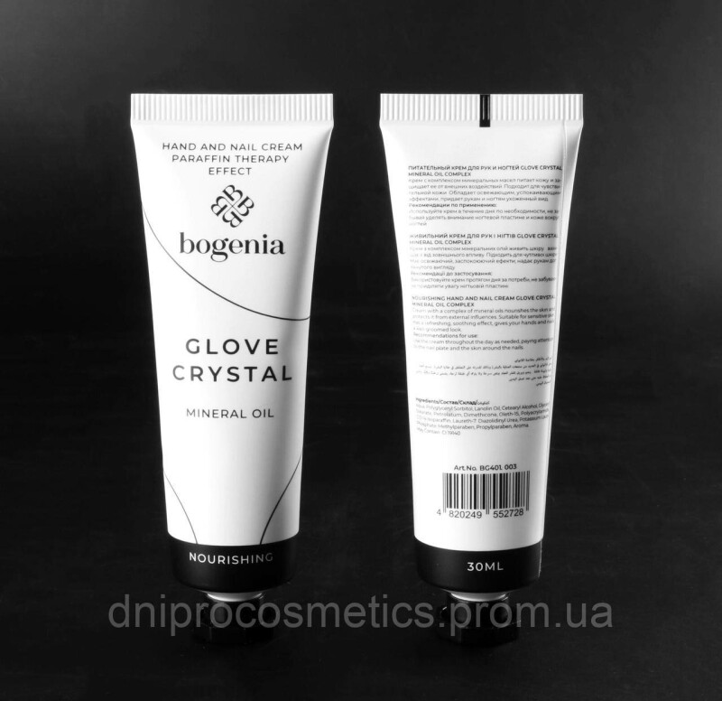 Froomo, маркетплейс професійної косметики та товарів для здоров'я\\Bogenia Крем для рук і нігтів живильний Glove Crystal Mineral Oil Complex
