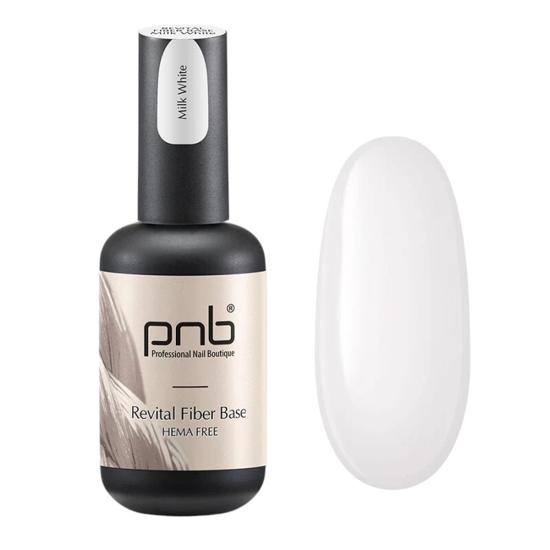 Froomo, маркетплейс професійної косметики та товарів для здоров'я\\Відновлююча база для нігтів з нейлоновими волокнами PNB Revital Fiber Base HEMA-Free Milk White, 17 ml