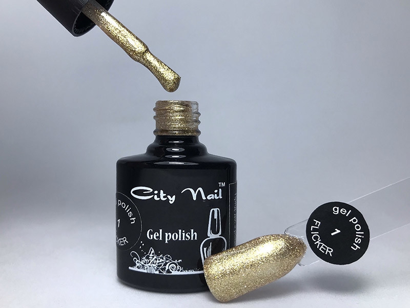Гель лак гліттер FLICKER № 1 золотий з шиммером, микроблестками 10