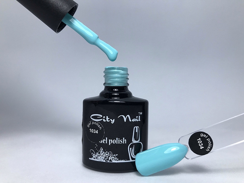 Froomo, маркетплейс професійної косметики та товарів для здоров'я\\Гель-лак CityNail 1034 блакитний, колір небесної синяви 10мл арт.Гл1034-10 - Професійні лаки для нігтів 6