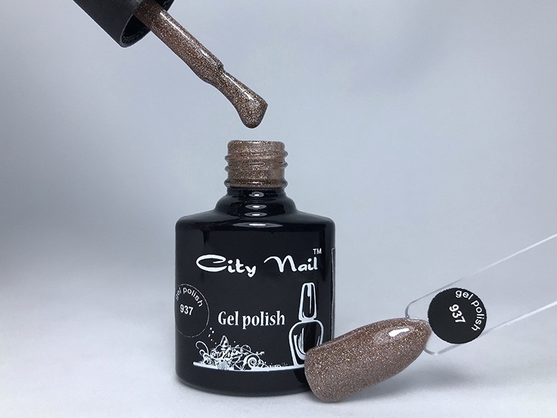 Гель-лак CityNail 937 темно бежевий (кавовий, світло шоколадний) з блискітками