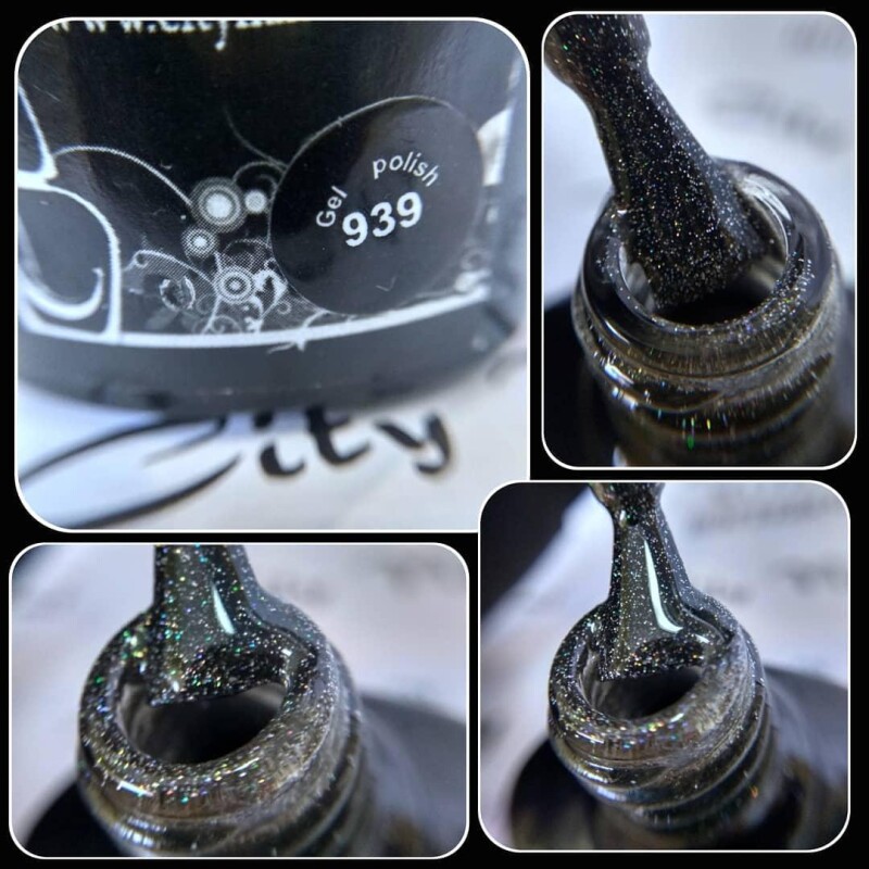 Гель-лак CityNail 939 сіро чорний з лелітками 10