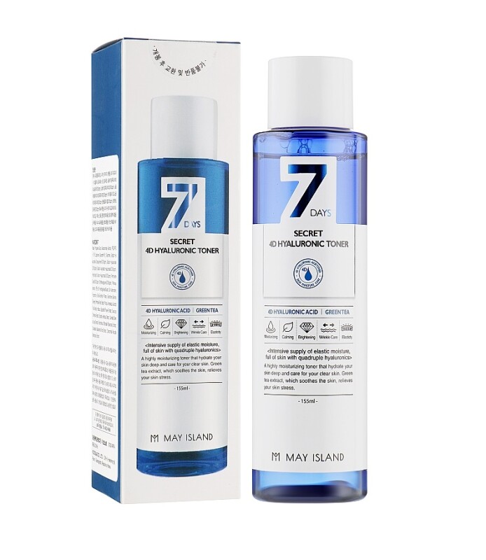 Глибоко зволожуючий тонер з 4 видами гіалуронової кислоти 7 Days Secret 4D May Island 155 мл