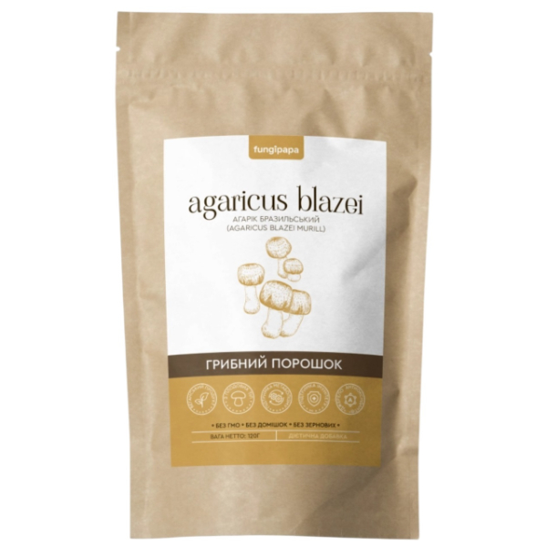 Грибний комплекс Fungipapa Агарік бразильський (Agaricus blazei Murill) - грибний порошок 120 г /60 порцій/