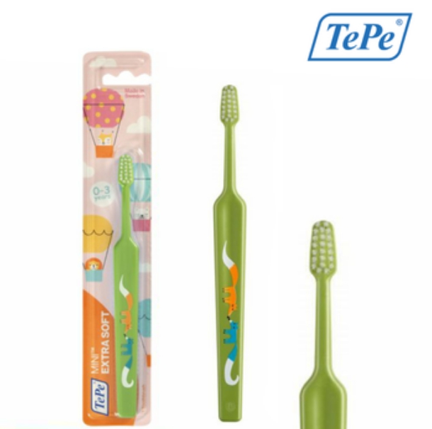 Froomo, маркетплейс професійної косметики та товарів для здоров'я\\Дитяча зубна щітка TePe Mini X-soft (софт) м'яка щітка для дітей від 0 до 3-х років, зелена