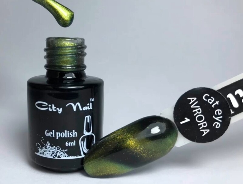 Froomo, маркетплейс професійної косметики та товарів для здоров'я\\Зелений бірюзовий смарагдовий гель-лак Котяче око Аврора cat eye AVRORA City Nail №4 Жовто-зелений