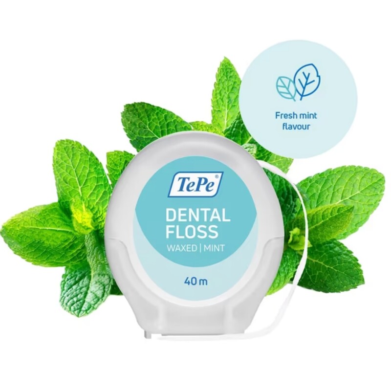 Froomo, маркетплейс професійної косметики та товарів для здоров'я\\Зубна нитка TePe Dental Floss вощена, що розпушується зі смаком М'яти, 40 м