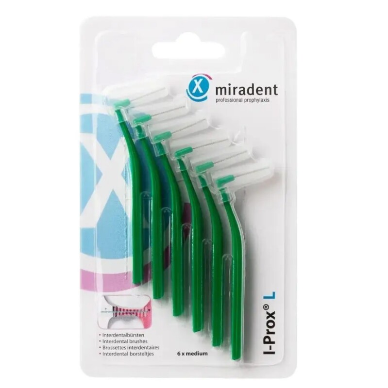 Froomo, маркетплейс професійної косметики та товарів для здоров'я\\Ручний інтердентальний йоржик Miradent I-Prox L, йоржик для чищення брекетів зелений (3,5 мм) набір 6 шт