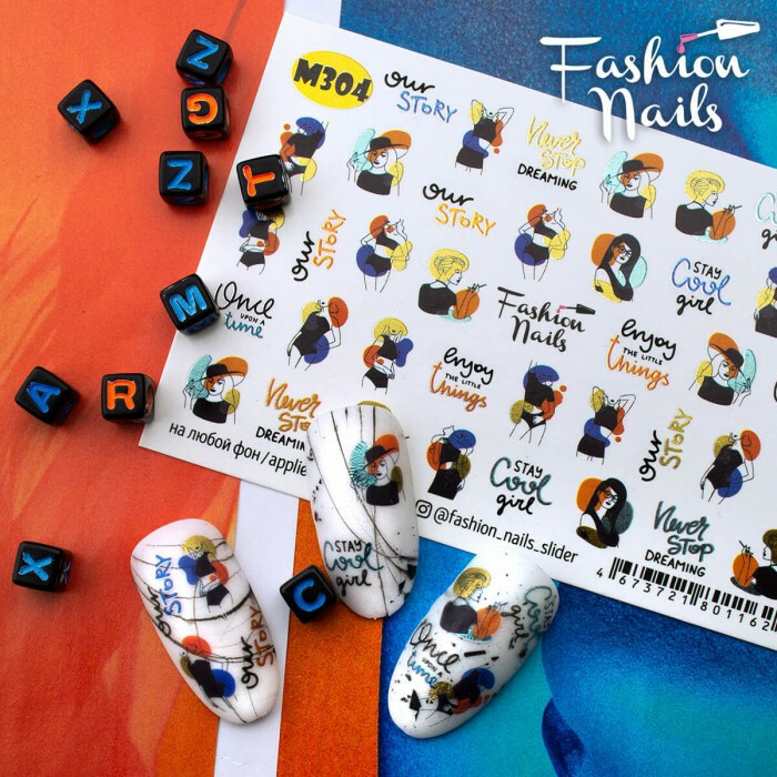 Слайдер дизайн Написи - водні наклейки для нігтів Fashion Nails М304