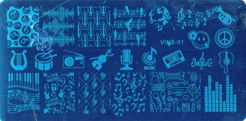 Froomo, маркетплейс професійної косметики та товарів для здоров'я\\Стемпинг пластини - металева пластина для стемпинга Музичні інструменти, Барабан, Ноти, Гітара VINS-1
