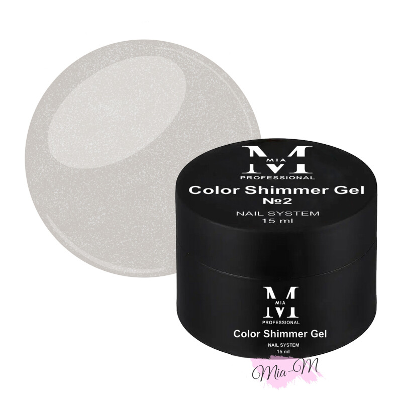 Froomo, маркетплейс професійної косметики та товарів для здоров'я\\Цветной гель для моделирования ногтей Mia-M Professional Color Shimmer Gel №2 молочный с серебристым шиммером, 15 мл